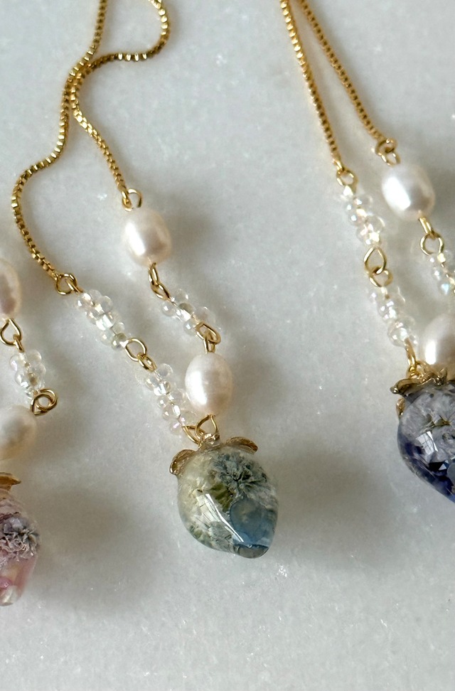 いちごブレスレット⑤儚げブルー スライダーボールチェーンで つけ外しが楽なブレスレット 大きな淡水パールとつやつやの 美味しそうないちごが可愛いブレスレット モコモコよお洋服と合わせても可愛い 小さな淡水パールが一粒揺れる 大人も可愛くつけられるデザインになります ─────✤──────♡──────✻─── 商品詳細 18KGPスライダーボールチェーン使用 ニッケルフリーマルカン ステンレス9ピン使用 レジンの中はかすみ草やシェルなど 淡水パール ❥発送について ・発送はクリックポストとなります ご自宅の郵便ポストへお届けとなります ※金具交換について (ピアス⇔イヤリングへの交換無料で行います 交換ご希望の場合は必ず、備考欄にご記入くださいませ) ピアスはチタンポストピアス、 医療用サージカルステンレスピアスがございます 作品によっては交換できないものもございます ご了承くださいませ ❥最後に ・ハンドメイドのため形・模様・色などに個体差が出る場合がございます ・ひとつひとつレジンパーツはお作りしています 花材などの個体差や配置の関係上お写真と全く同じにならない場合がございますが、同じ花材を使用しお作りしてお届けいたします ・お使いのモニターなどにより実際の商品と色合いが違って見える場合がございます ・梱包には細心の注意を払っておりますが、配送中の破損は責任を負いかねますので ご了承くださいませ ・アクセサリーのお取り扱いは、ご自宅にある大切なアクセサリーと同様、優しくお使いいただけたらと思います