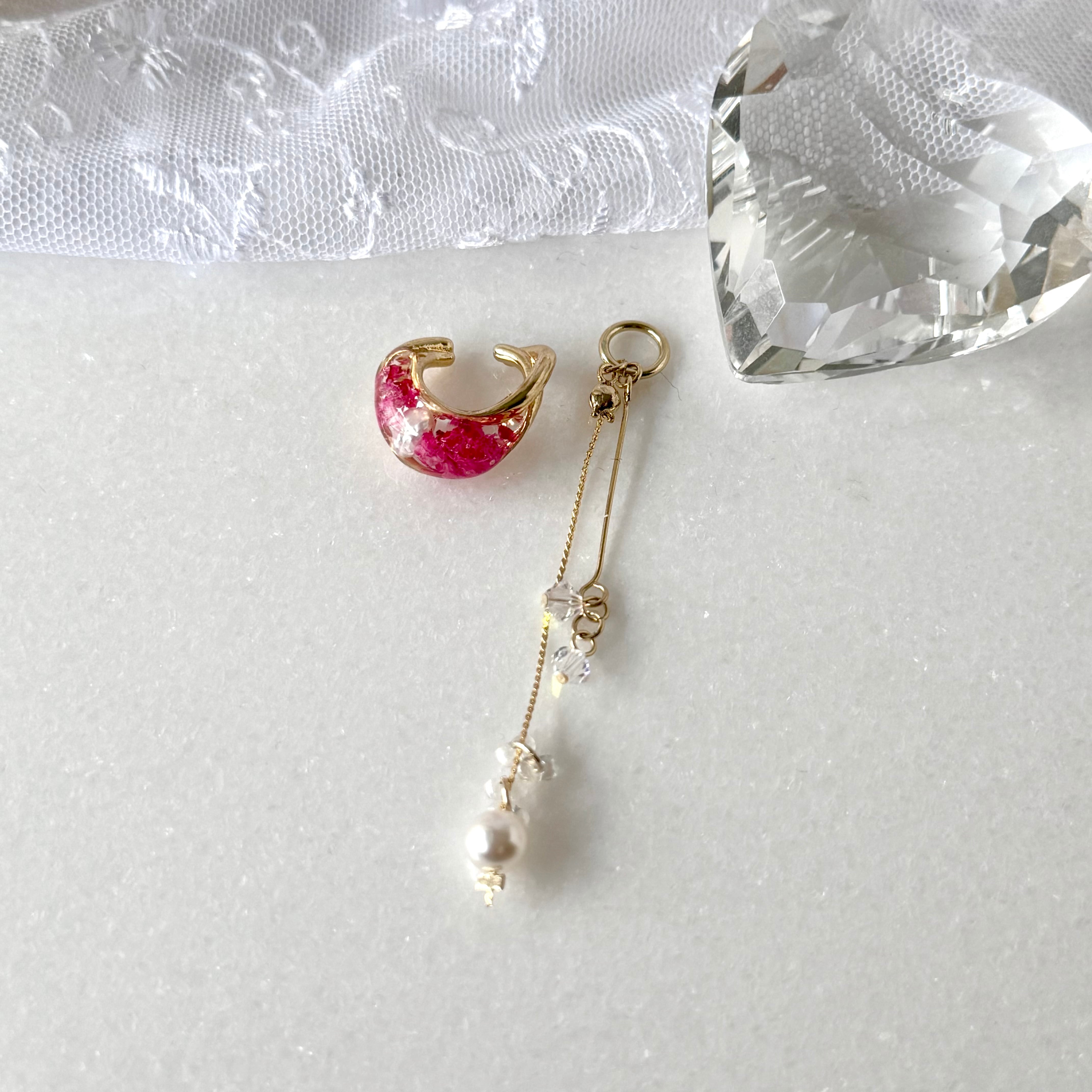 お花のイヤーカフ2wayチャームつき