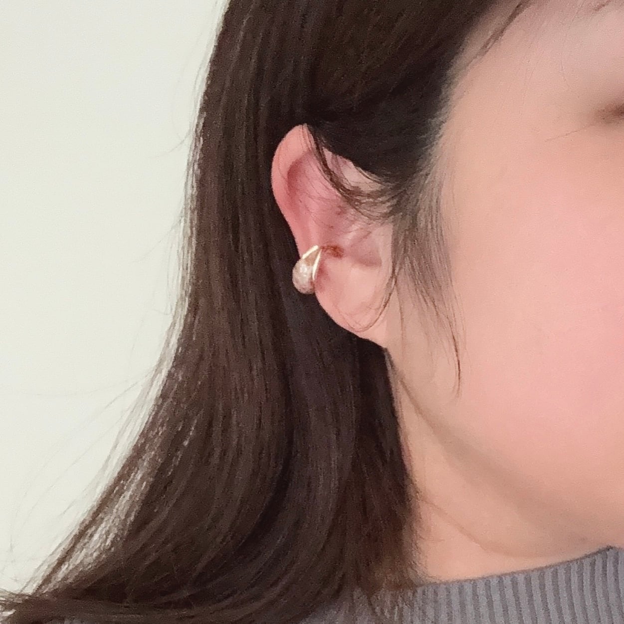 イヤーカフは耳に通して落ち着く場所でとめるだけ