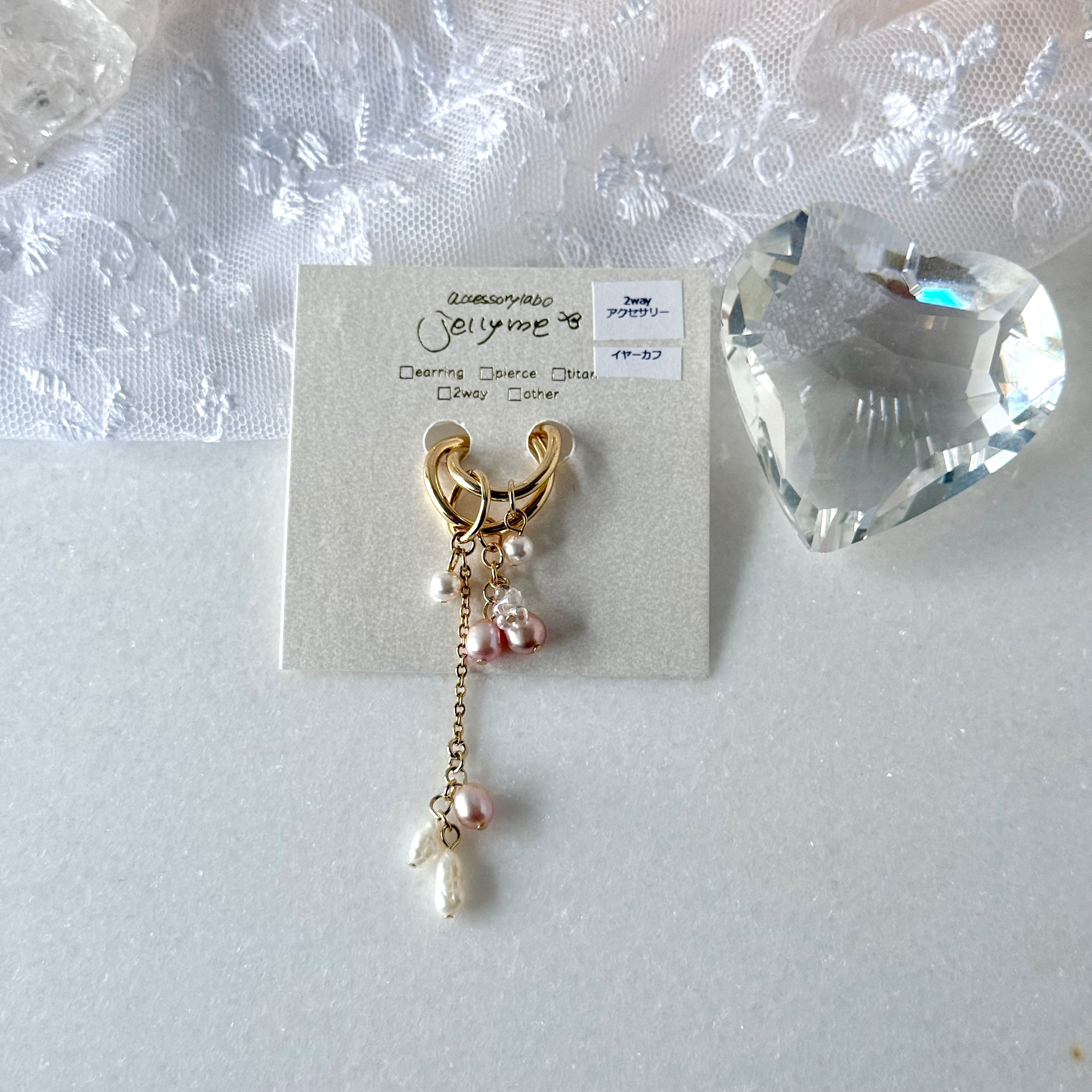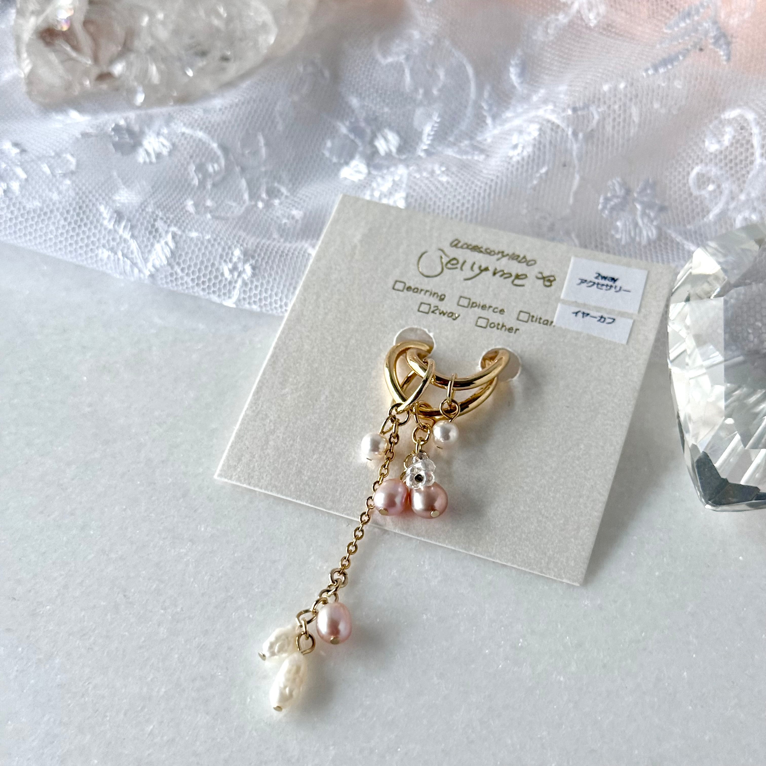 淡水パールのイヤーカフ2wayチャームつき