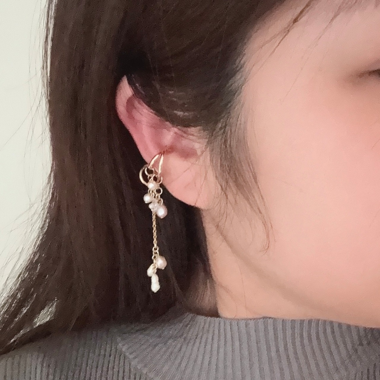 淡水パールの上品なイヤーカフ
